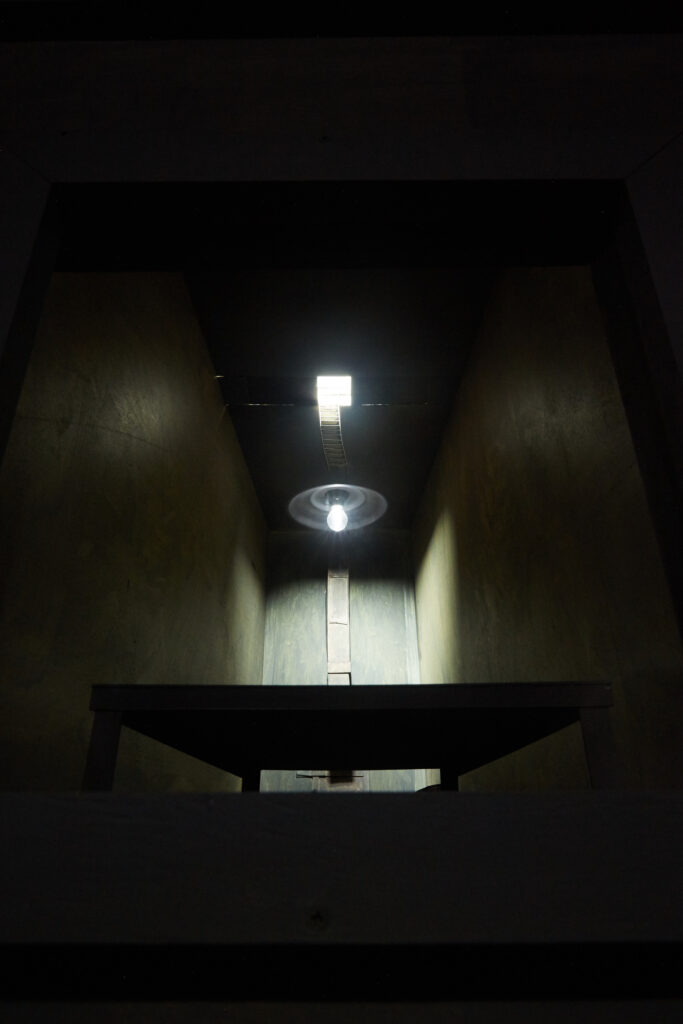 Materials are practical, quotidian, – plywood, timber, cardboard, paint, light. There is a dialogue between initial concepts and the construction of the work, with visual appeal the motor that drives the process, producing works that engage viewers on multiple levels.